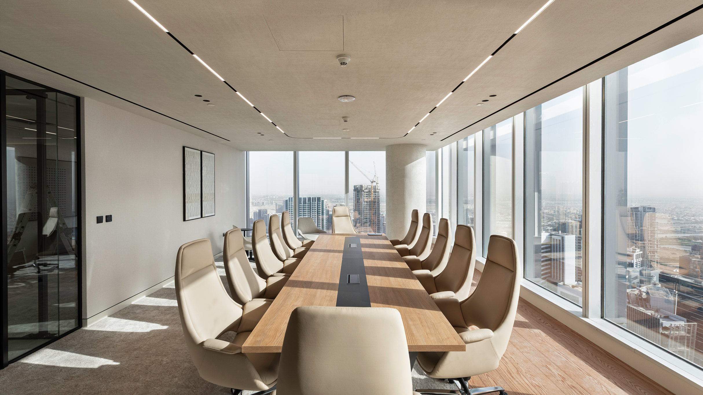 A key part of the vision is the 360 degree view of Business Bay. Horton Interiors planned the layout to make the most of the skyline so the city becomes a daily backdrop. Open areas draw in light and create a sense of flow while quieter spaces offer comfort without losing the openness of the wider office.