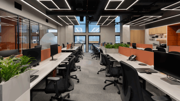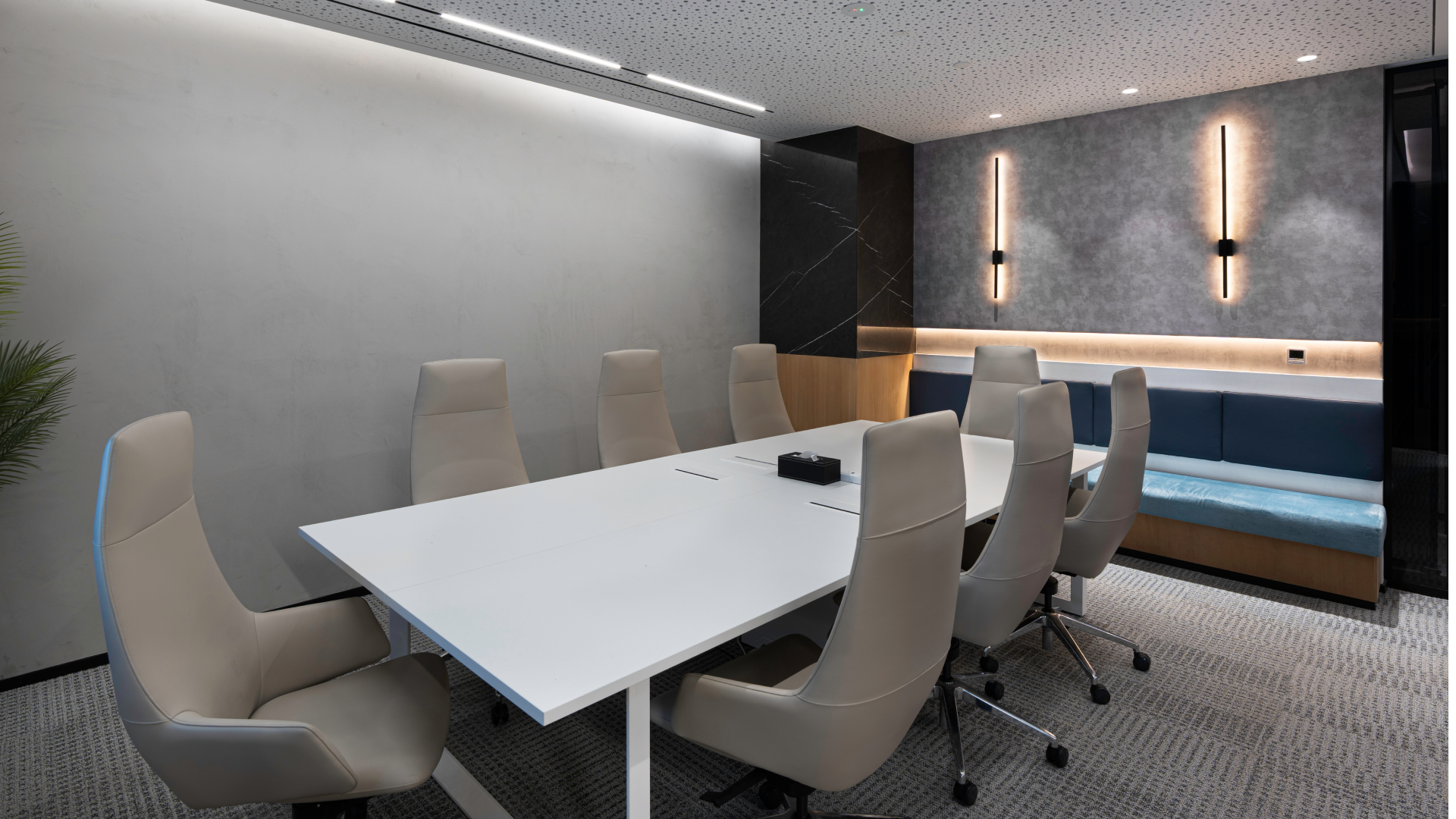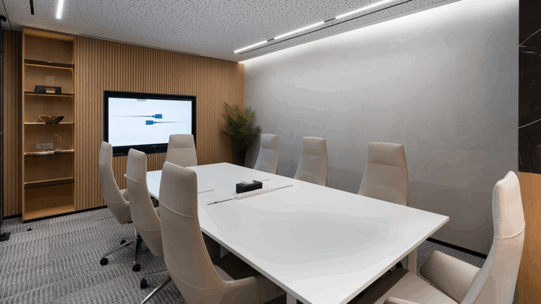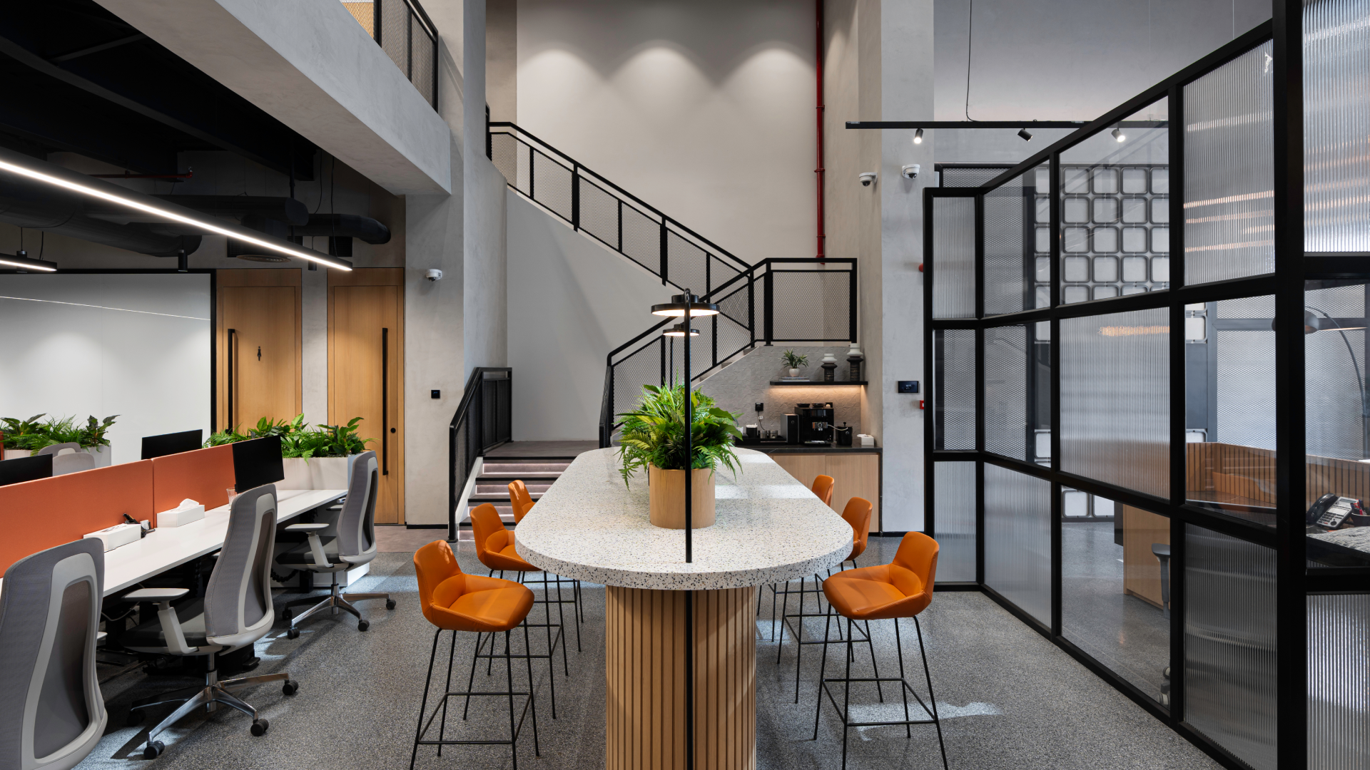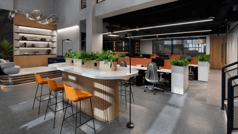 To complement the openness, acoustic pods are strategically integrated throughout the office. These provide quiet, enclosed spaces for calls, focused work, and private conversations, allowing concentration and collaboration to coexist seamlessly. Acoustic treatments across the space further soften sound, ensuring a calm and comfortable working atmosphere.