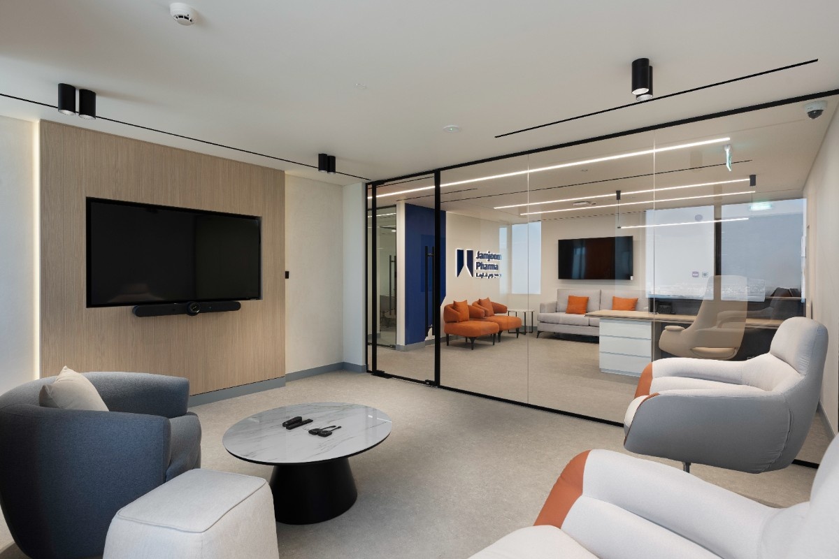 Our design and build project for Jamjoom Pharma at Dubai Internet City is designed with clarity, comfort, and performance in mind. The workspace reflects a refined balance between functionality and a calm, professional atmosphere.