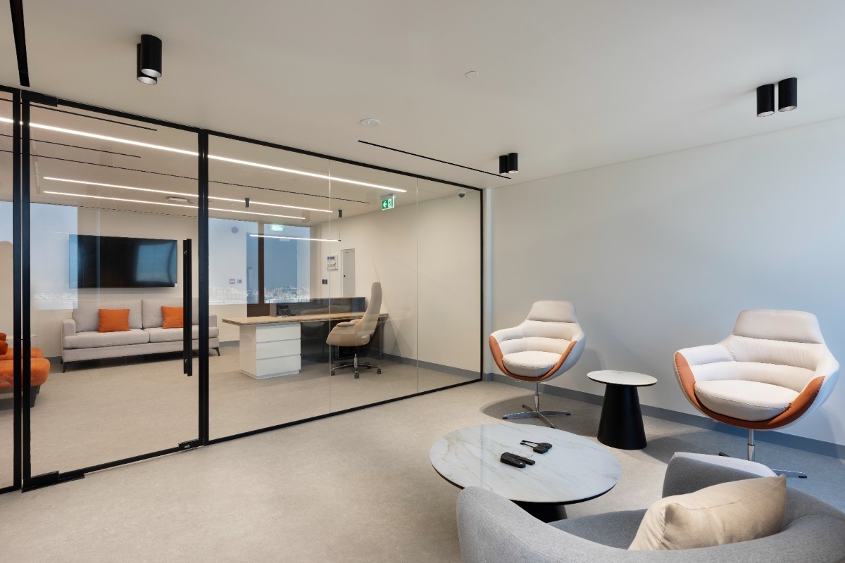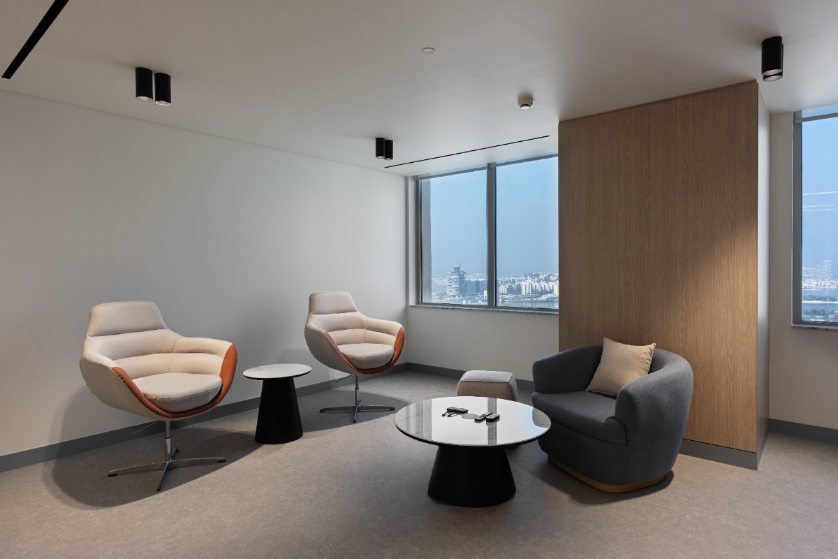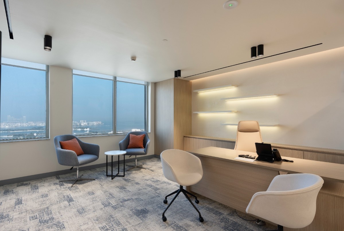 A standout feature of this project is the stunning panoramic view overlooking Palm Jumeirah. The layout has been carefully planned to frame these views and maximise natural light, creating an uplifting environment that supports focus, wellbeing, and everyday productivity.